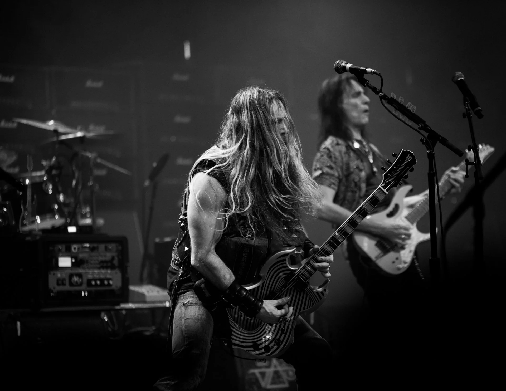 During these sets, the guitarists often join each other on stage for collaborative performances, trading solos and riffs.